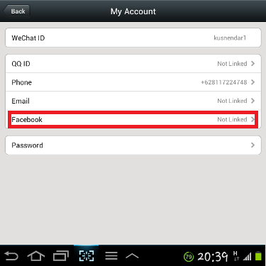 5. Jika sukses maka tampilan akun WeChat yang sudah terhubung dengan Facebook mirip berikut.