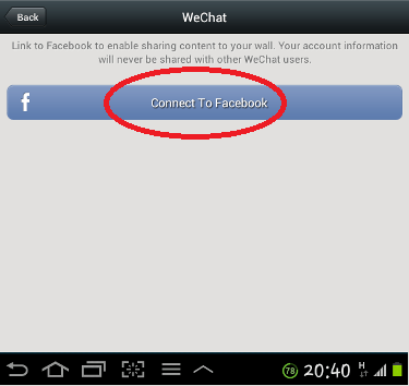 Selain itu aplikasi WeChat ini mampu menghubungkan QQ ID dan Facebook untuk mengimpor kontak dan mempublish sesuatu yang ada di akun WeChat anda ke situs tersebut. Untuk melakukan hal tersebut maka diperlukan settingan pada pengaturannya. Berikut langkah-langkahnya.