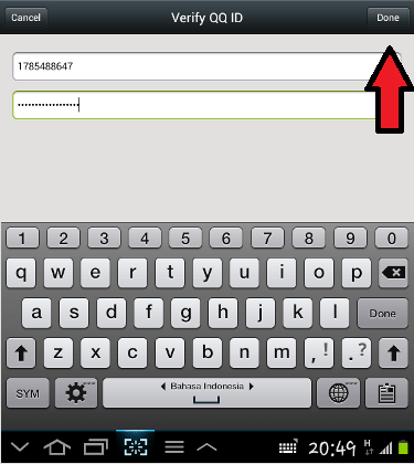 4. Masukkan nomor akun QQ ID dan pasword anda, lalu DONE.